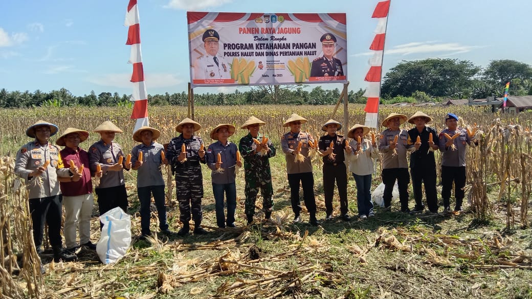 Halmahera Utara – Polres Halmahera Utara (Halut) bersama Dinas Pertanian Kabupaten Halut sukses melaksanakan kegiatan Panen Raya Jagung di Desa Kali Pitu, Kecamatan Tobelo Tengah, Senin (12/5/2025). Kegiatan ini merupakan wujud dukungan terhadap program ketahanan pangan ASTA CITA Pemerintah Republik Indonesia di bawah kepemimpinan Presiden Prabowo, sekaligus mengawal arahan penggunaan 20% dana desa untuk sektor pangan.