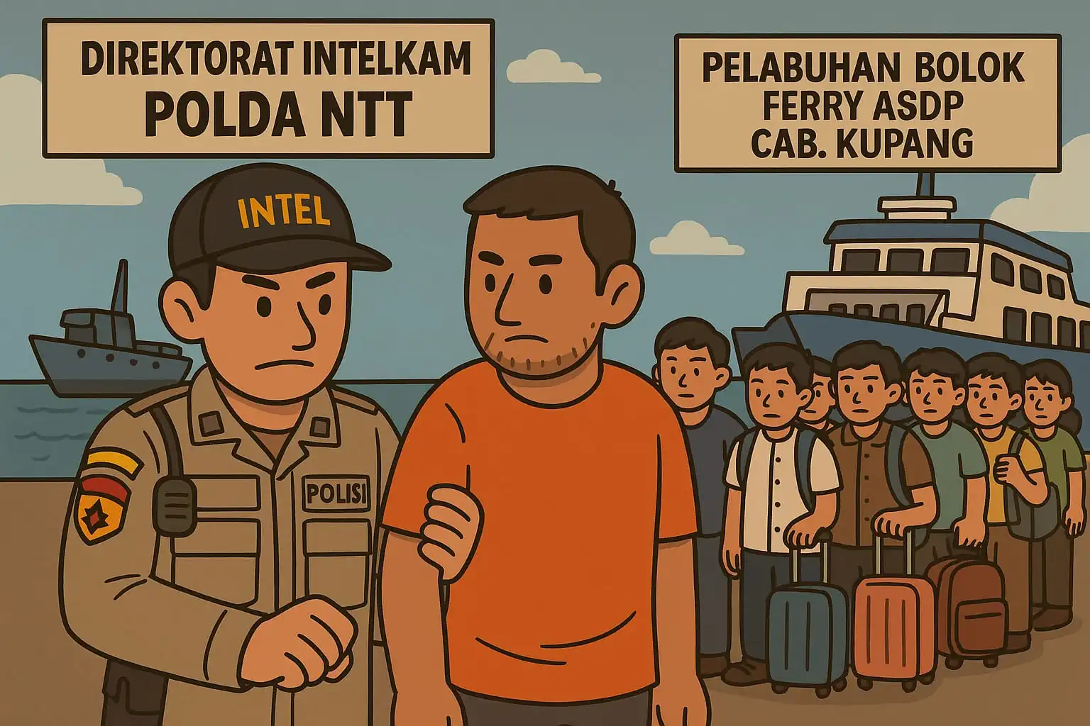 Pelaku yang diduga sebagai koordinator perekrutan ilegal beserta para korban diamankan di Pelabuhan Bolok Ferry ASDP Cabang Kupang pada Kamis (29/5/2025) sekitar pukul 12.00 WITA.